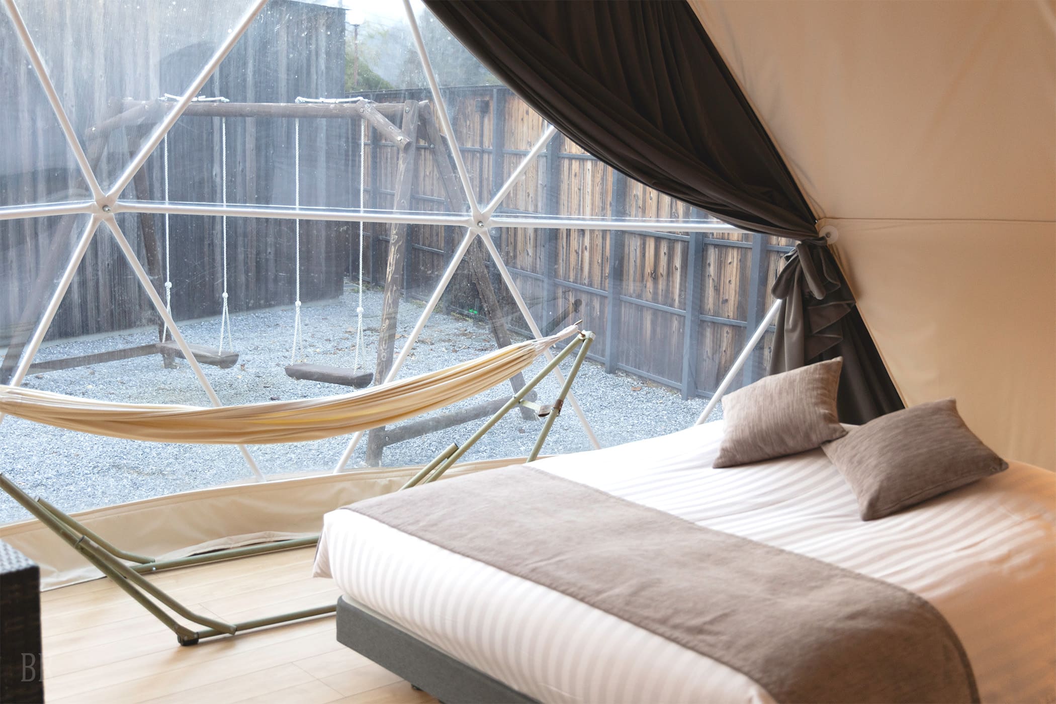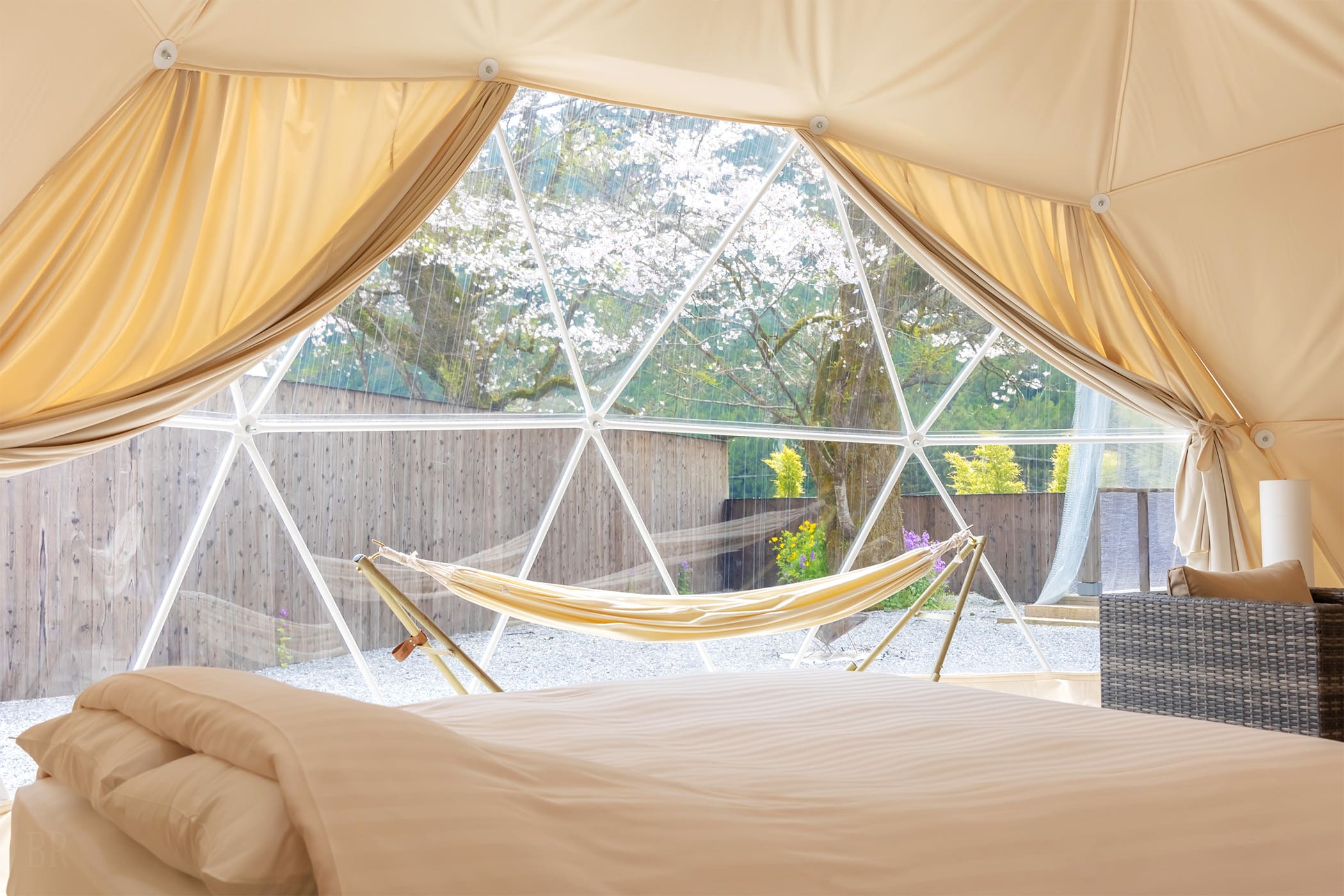 また、直径7m、天井高約4mのドームテント(約22畳)は、寒冷地でも信頼のあるデンマーク産。冬はあたたかく、夏は涼しくお過ごしいただけます。